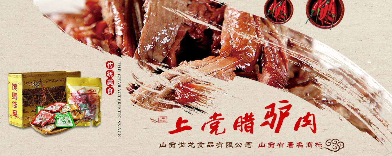 山西世龍食品有限公司是以“世龍”牌上黨臘驢肉系列產(chǎn)品為主導(dǎo),集科研開發(fā)、良種繁育、基地建設(shè)、生產(chǎn)加工、市場營銷于一體的農(nóng)業(yè)產(chǎn)業(yè)化國家重點龍頭企業(yè)、全國農(nóng)業(yè)標(biāo)準(zhǔn)化示范區(qū)、全國食品行業(yè)優(yōu)秀龍頭企業(yè)、山西省農(nóng)業(yè)產(chǎn)業(yè)化重點龍頭企業(yè)、山西省農(nóng)產(chǎn)品加工“513”工程單位、山西省帶動貧困地區(qū)基地建設(shè)重點龍頭企業(yè)、山西省民營畜牧業(yè)示范基地、山西省質(zhì)量信譽(yù)AAA級單位、山西省重合同守信用單位、山西省消費者協(xié)會誠信單位、山西省民營科技企業(yè)。